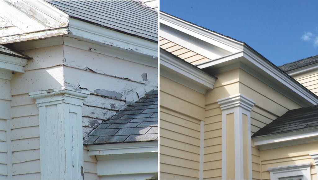 ‘Most of the clapboard and trim had to be replaced with pine, being careful to copy the original’