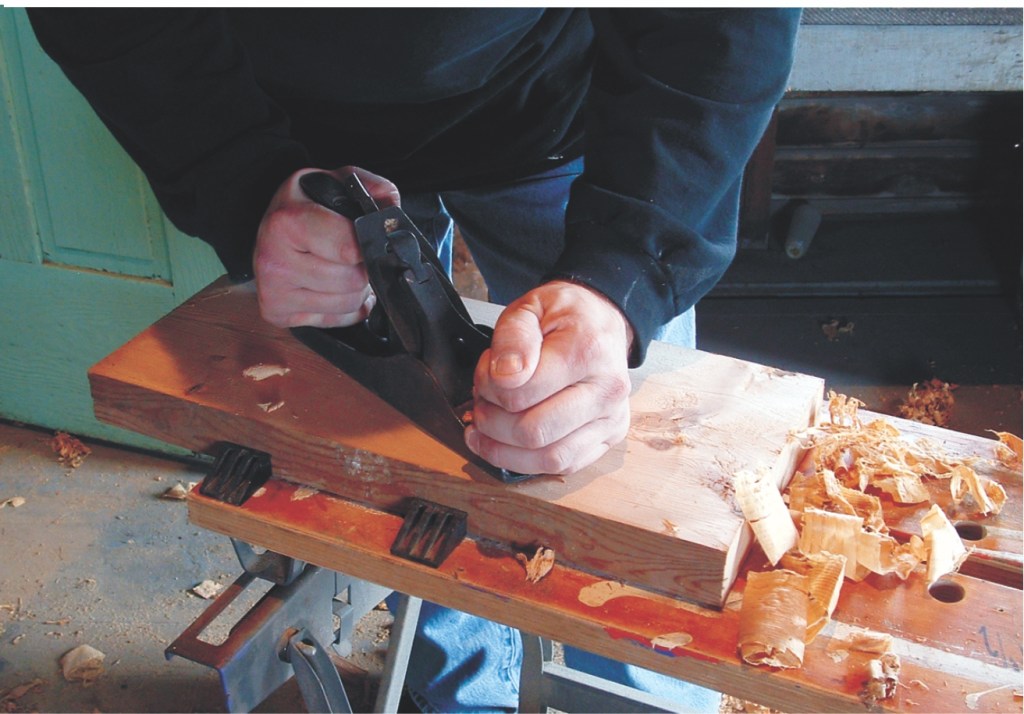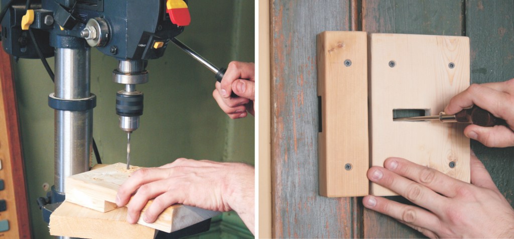 I found some great old Eastern white pine floor joists from the same dismantled tool shed. The wood was old and the patina told the tale of age. I cut a piece to the approximate size of the newly-interpreted box latch and hand planed the two sides to the thickness of the original (see image 3). I then took the stock over to the table saw and trimmed the width to the proper size.