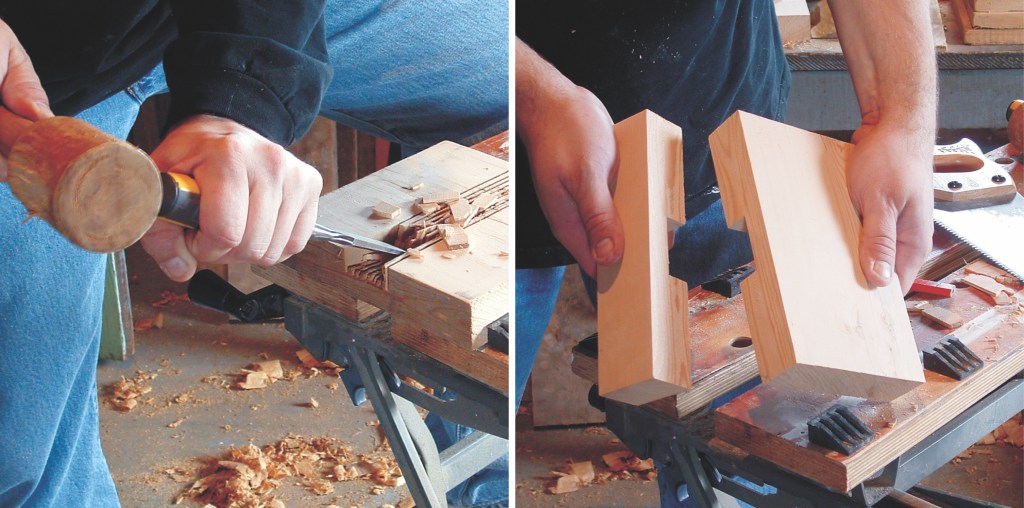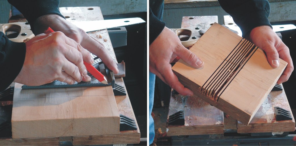 I clamped the piece onto my workbench and proceeded to knock out the excess wood with a chisel in the slot, cleaning up the balance with a very sharp chisel removing any burrs that might impede the slide (see image 6). The now-slotted piece of wood will make up both the box latch and the keeper. Laying out the keeper, I simply cut it off with a sharp saw (see image 7). I then got to work on the slide.