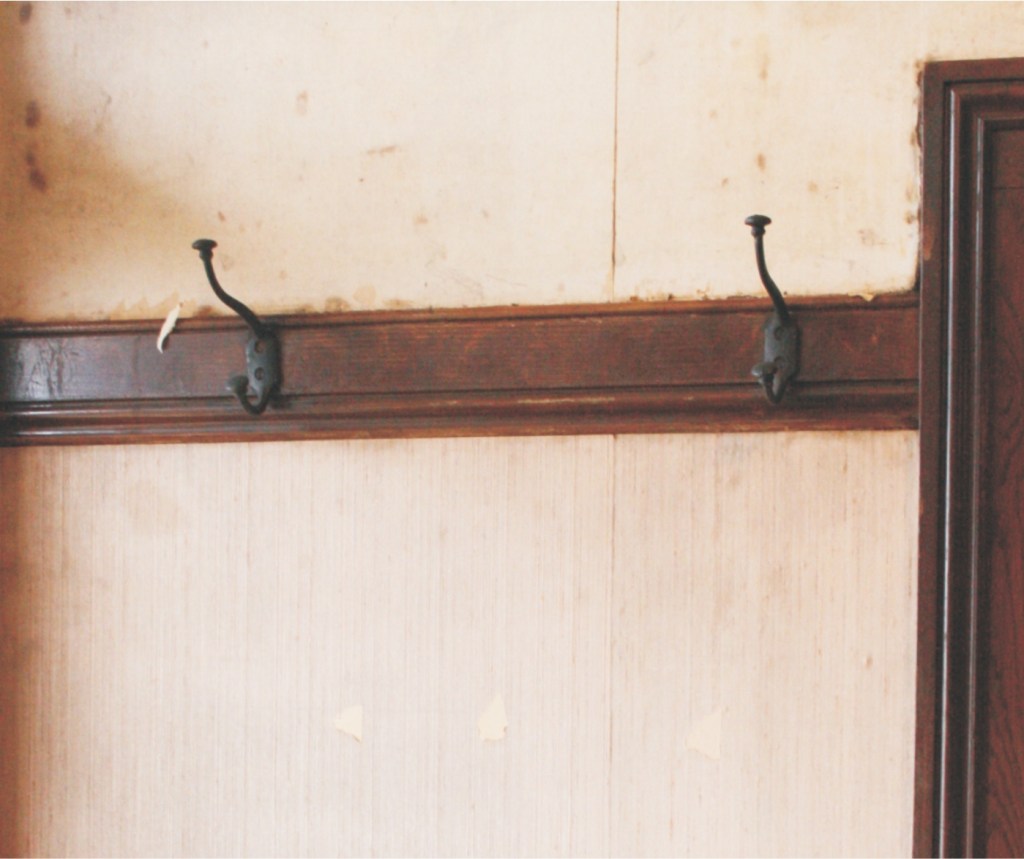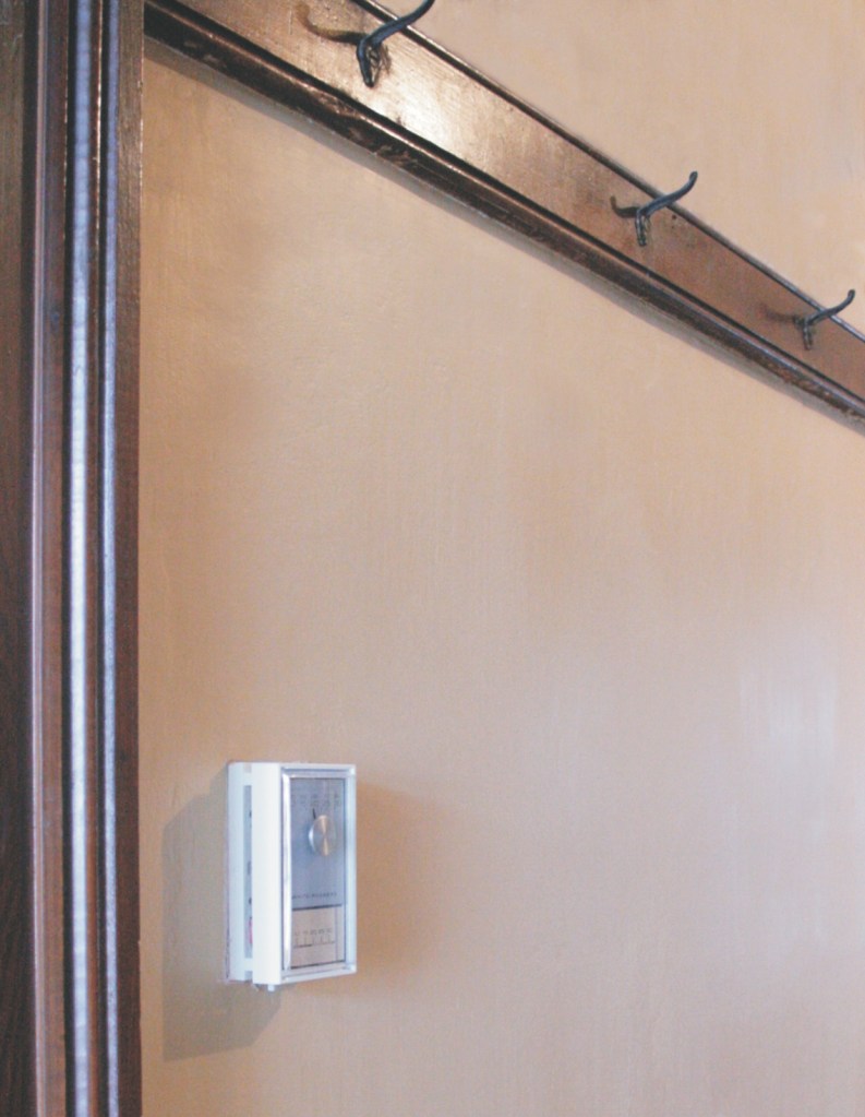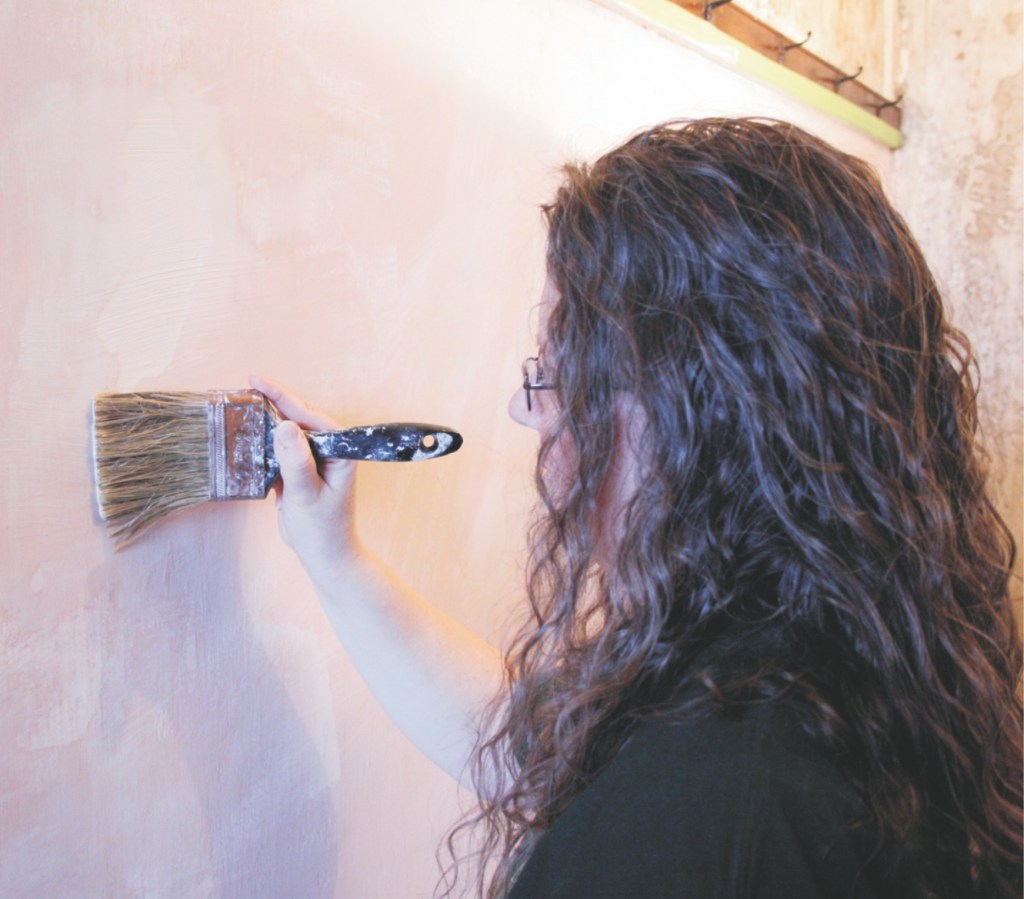 Well, it’s all done and the wall looks like something out of an abandoned factory (see image 8). Most often when wallpaper is removed, old glues and stains make all your hard work seem in vain. Don’t fret – drywall is not the answer. A little trick in the restoration trade is to prime the wall with an old-fashioned tinted whitewash (see recipe in sidebar). You see, when you pre-prime with a lime-based wash, it will fill in small nicks and scrapes and the dark tint will allow you to see areas that may need small surface repair (see image 9). Once the wall is primed, a lime-based repairing compound (see side bar for recipe) can be used to fill voids and even out bad spots (see image 10). Lime plaster is a lovely material with no sanding required – just a simple blending into its surroundings with a damp paintbrush once it begins to set-up (see image 11).