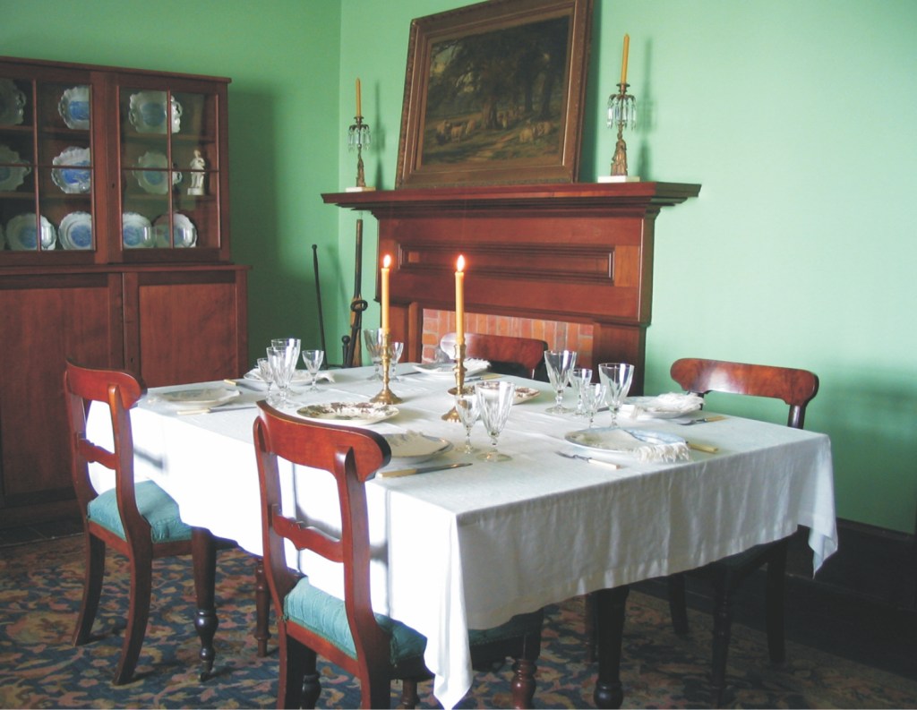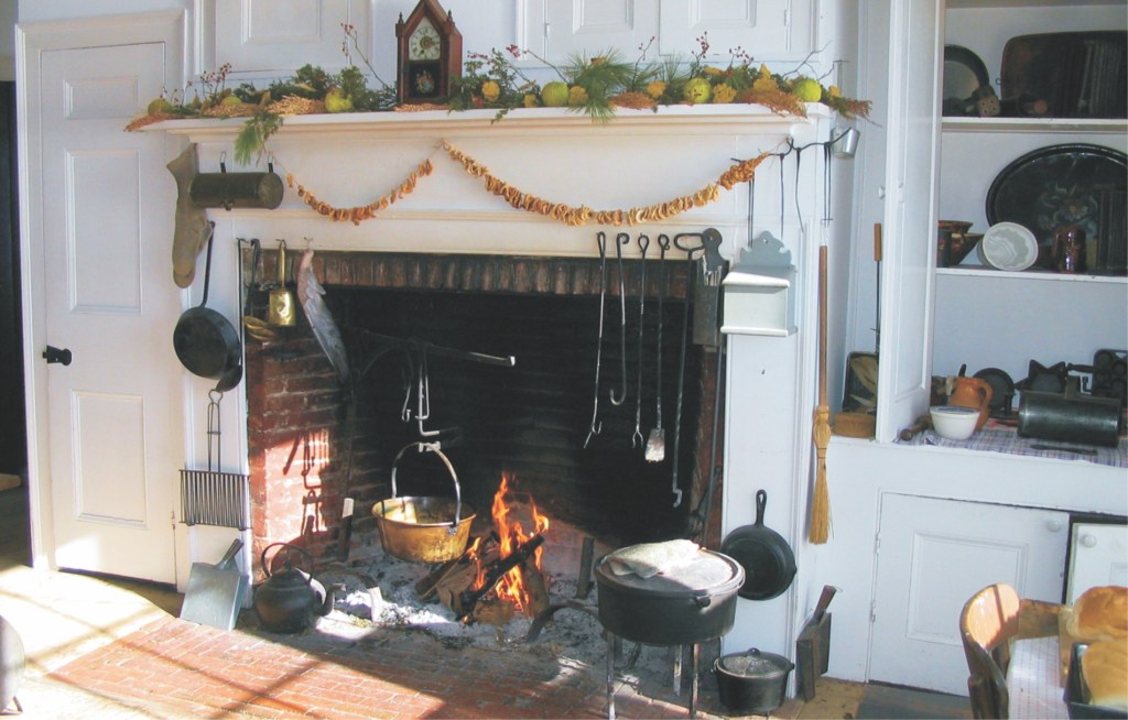 The Homestead has three brick chimneys with two Rumford fireplaces and two heating stoves. The large kitchen fireplace is still used almost daily by visiting school children who make popcorn or cookies. The museum hosts “Locavore” events too, featuring foods and wines from the region.