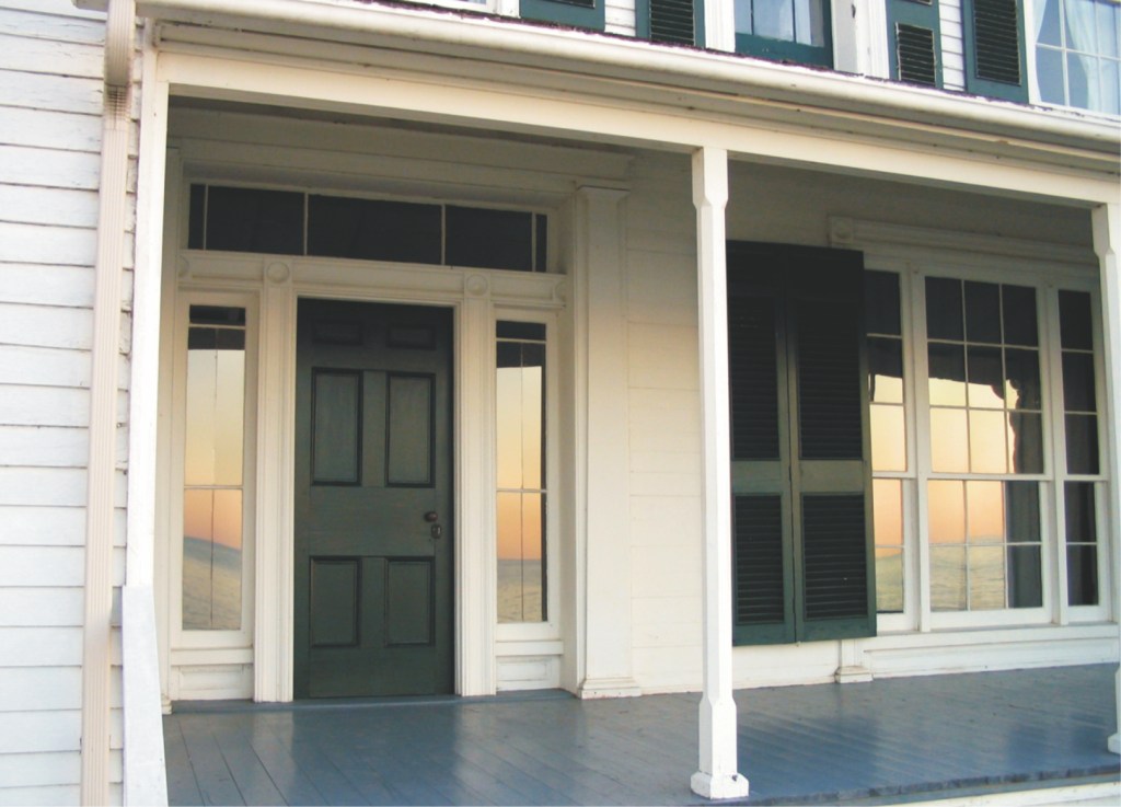 The John R. Park House is significant as a rare Canadian example of American Greek Revival domestic architecture. This architectural style probably reminded the Parks of their New England home. The frame house, built in 1842, has a two-storey centre block with north and south gables and fanlights, balanced by one storey wings to the east and west. The wings were once symmetrical, but an addition was added on the east side in the late nineteenth century. The location, right on the shore of Lake Erie, provides stunning views over the water. You can easily imagine the family watching for one of their steamers or schooners from the very large nine-over-six, south facing windows.
