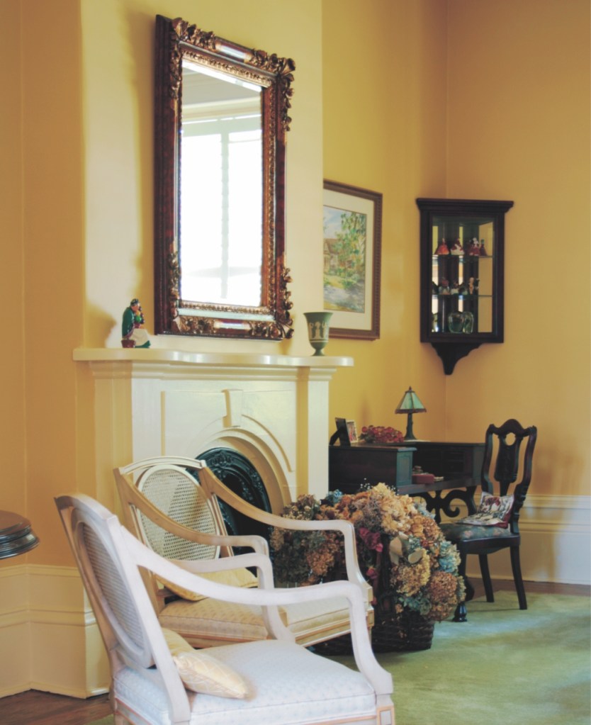 In our decorating efforts we have endeavoured to respect the heritage of our home. Interior wall coverings and colours were chosen to complement the antique furnishings, china and porcelain pieces, many of which are original to the home. The dining room suite, which dates back to 1845, and other period pieces were gathered at estate sales and auction houses. An art conservator, from the Hamilton Art Gallery, was engaged to restore many of the oil paintings done by my grandmother, an 1898 graduate of the Ontario School of Art.