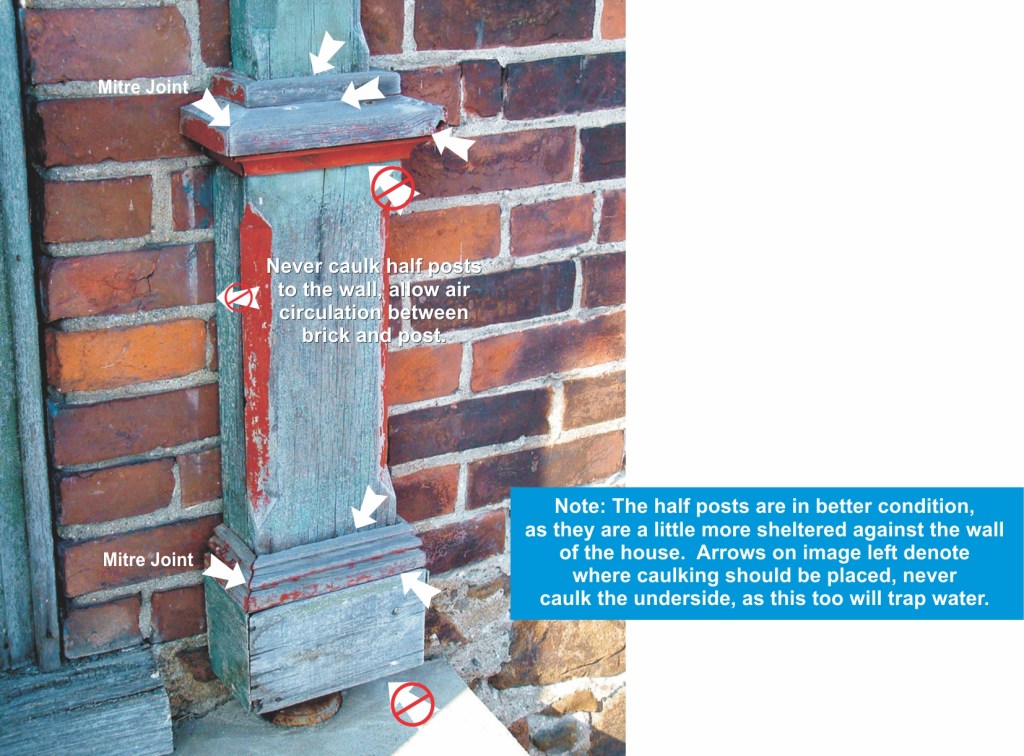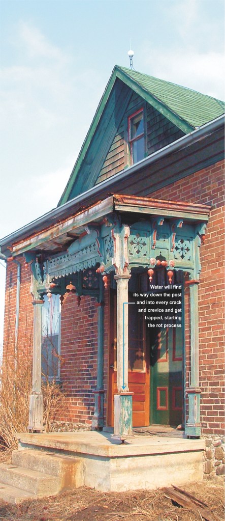More and more terribly executed repairs are being perpetrated on original verandah, portico, or porch posts and columns in Canada each day. Please note: one should never implement repair or restoration to a verandah post if their skills are not well-honed for the task. The nastiest thing happening to historic millwork is the replacement of posts with square and unadorned pressure treated lumber. A verandah, portico or porch can be literally ruined when unsympathetic repairs or replacements are done.