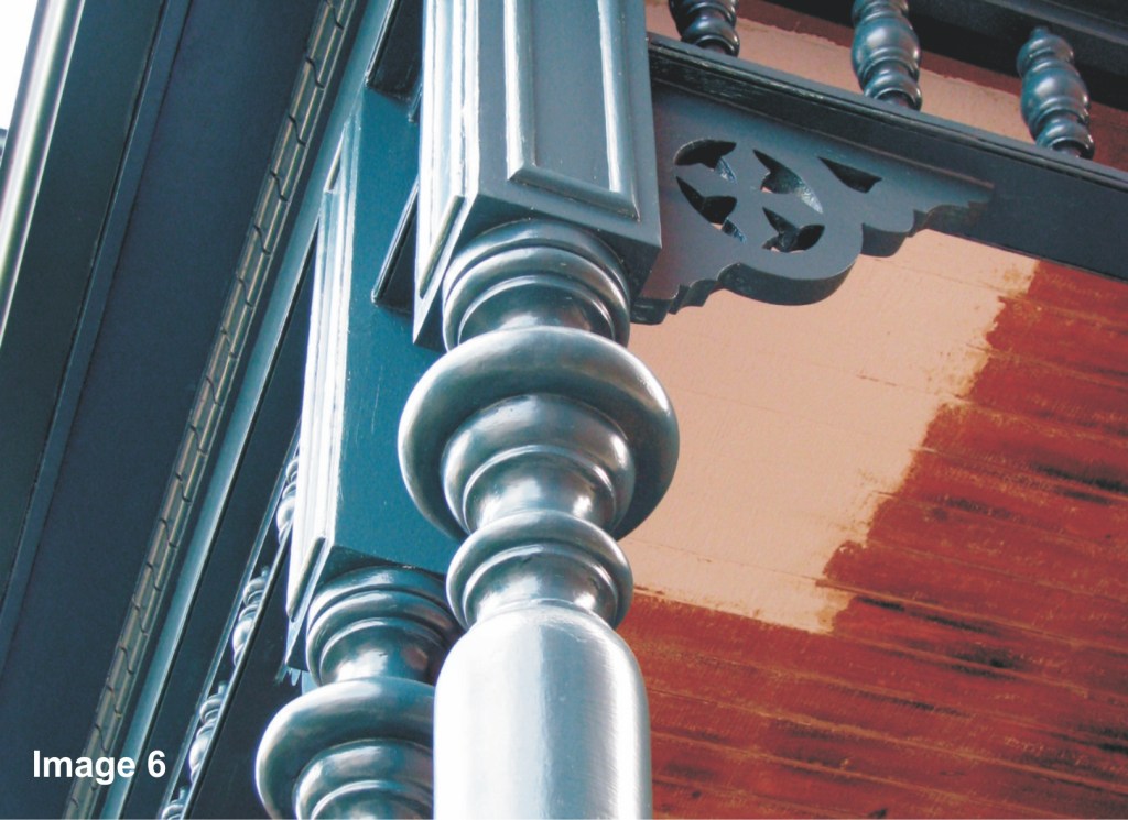 As columns and posts are a structural element, and most likely supporting a roof load, any work should be done in-situ, or if the post or column is so far rotted (see Image 1) you must contract an expert. I have had great success with restoration grade wood epoxies on most rotted wooden elements (see Image 5). Epoxies are great, however, they do have their limitations. They must be painted and maintained, and any areas where water could find its way into the post or column must be caulked with paintable latex caulking and top-coated with high quality exterior grade paint.