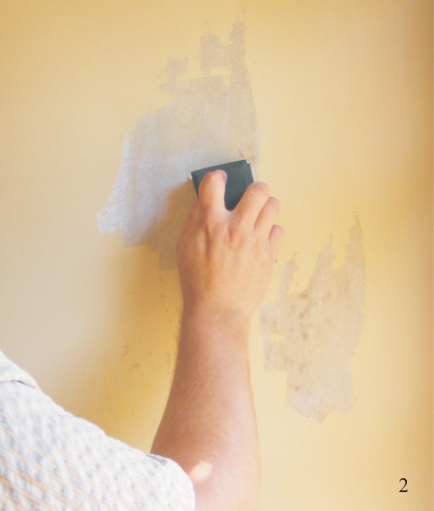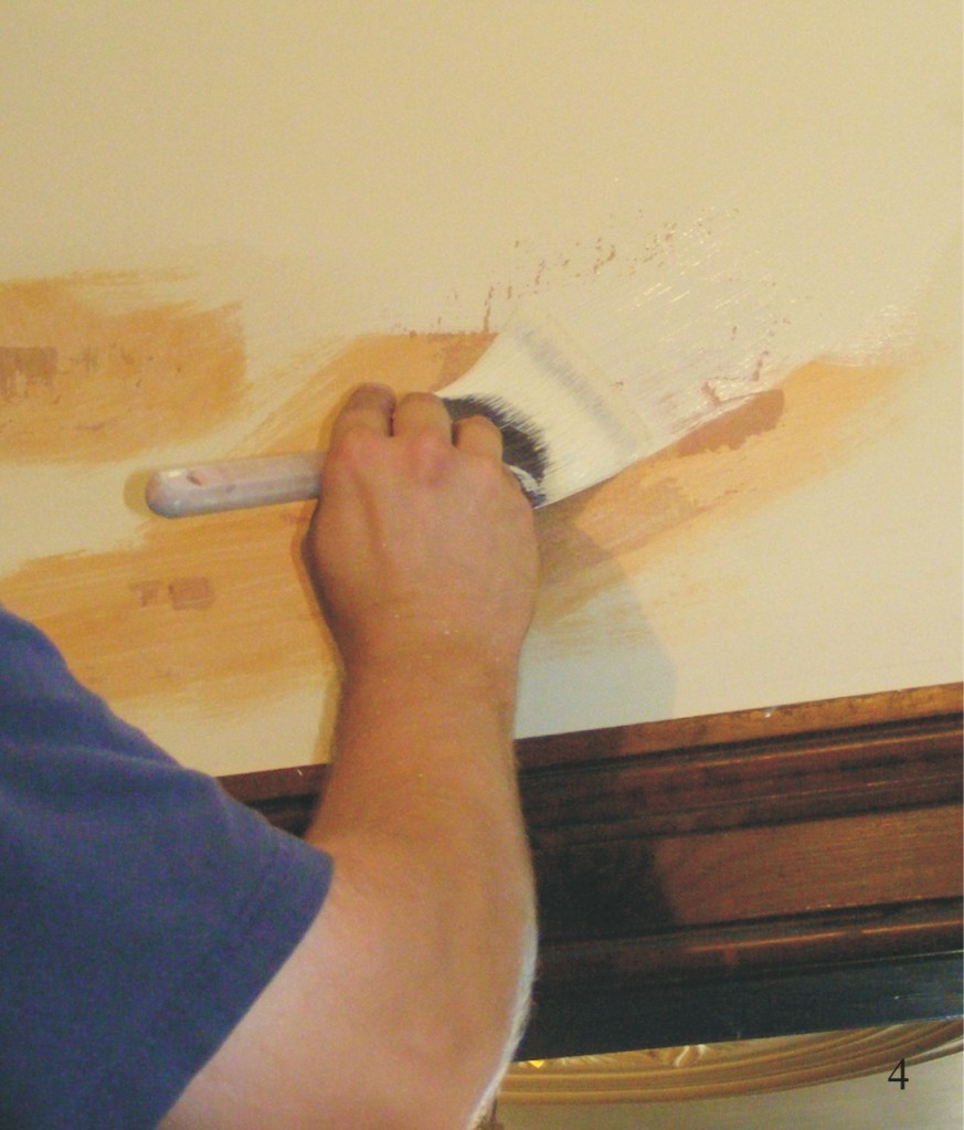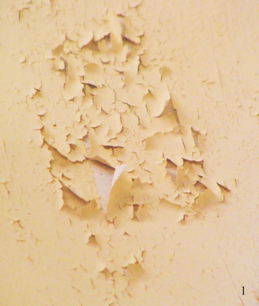 The recipe for old time wallpaper paste, and an environmentally green one at that, includes alum. Alum does not like latex paint and will crack the paint due mostly in part to the alum’s effect on the surface tension of the latex paint. The resolution for our predicament was to use a carbide scraper to remove the peeling paint, followed by feathering the edges of the affected areas with sandpaper (see Image 2), then following-up with a coat of shellac (see Image 3). After the shellac dried, I lightly sanded the area and reapplied my latex paint with success (see Image 4).