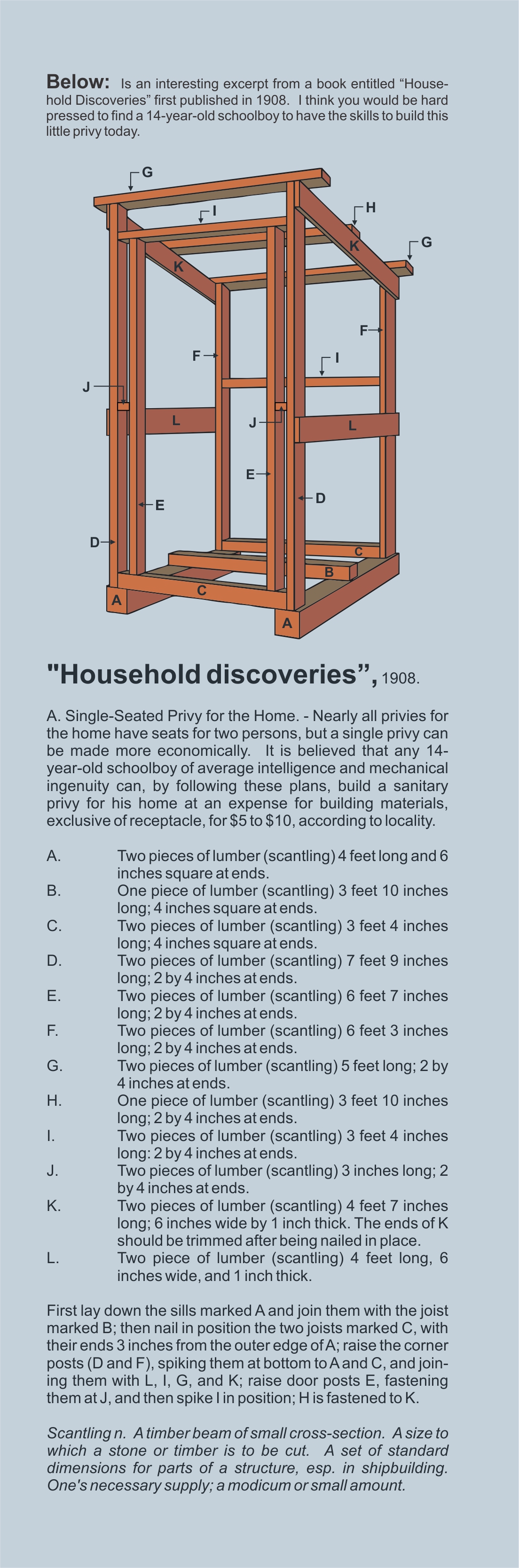 Outhouses are, after all, a very large part of our history. They have in the past, been the BUTT of all jokes and continue to be so. But, realistically, they were as necessary as the common toilet is today.