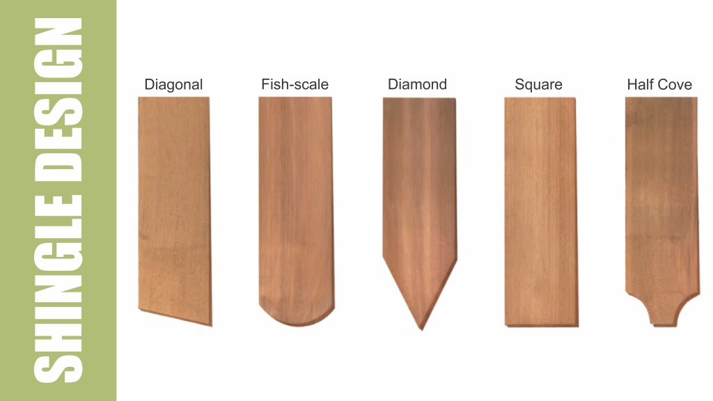 Wood shingles as a wall covering stems from a very practical and utilitarian beginning. Something that has not changed in many areas. It was only a matter of time before the wood shingles aesthetic beauty would be recognized as well.  Throughout the reign of Queen Victoria, architects and builders were playing with shingles like children playing with arts and crafts. Shingles were cut into diamonds, fish scales, clipped corners and more.  They were laid with arrangements that included isolated patterns within a wall, patterned rows, changing styles at each floor level, changing of reveals and much more.  Even the plain undressed wooden shingle would find itself in the center of vouge with the emerging of the Shingle Style of architecture in 1880.
