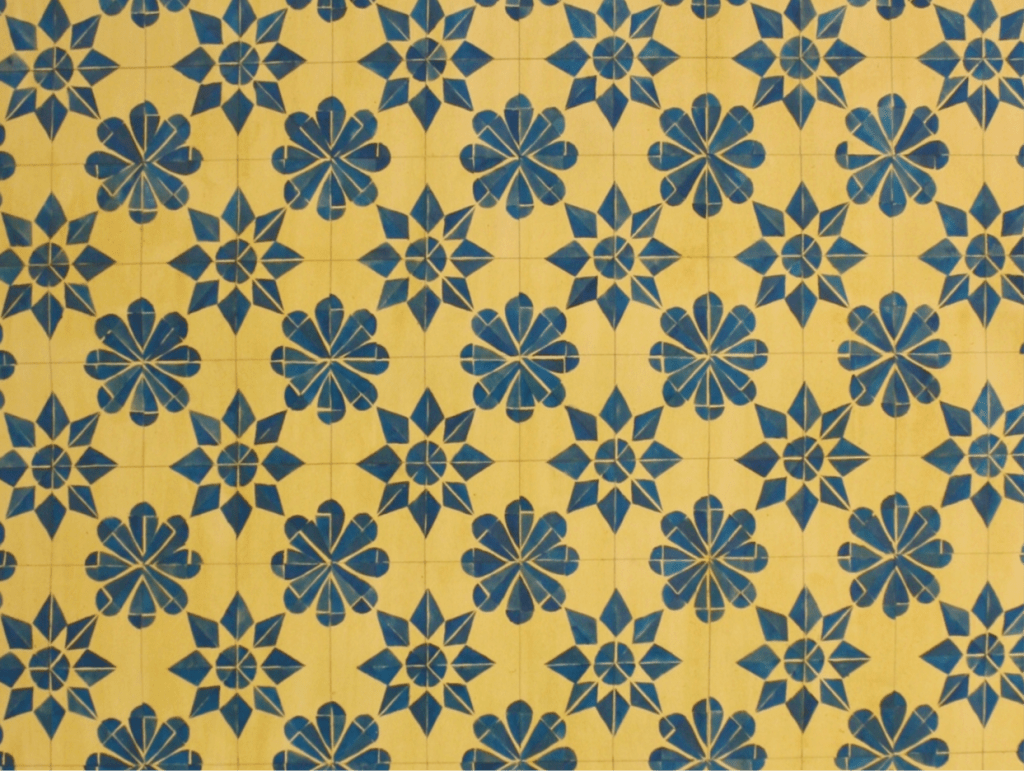 Floorcloths or “Oylcloths” are first mentioned in Britain at the beginning of the eighteenth century. They were painted by humble house painters and often offered in the classical designs used for marble floors by the fashionable architects of the day.