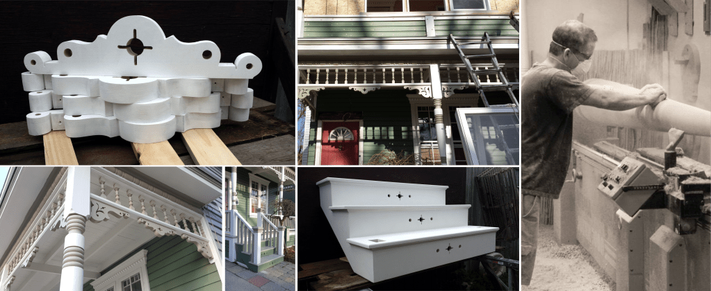 Millwork and fretwork, or Gingerbread simply began life as a way to create stone embellishments and details out of wood, thus allowing this type of domestic architecture to become obtainable to the working class. When rail service became more and more dependable and less expensive, millwork companies all around North America produced catalogues of off-the-shelf verandah components including a myriad of turned spindles, balusters and columns.